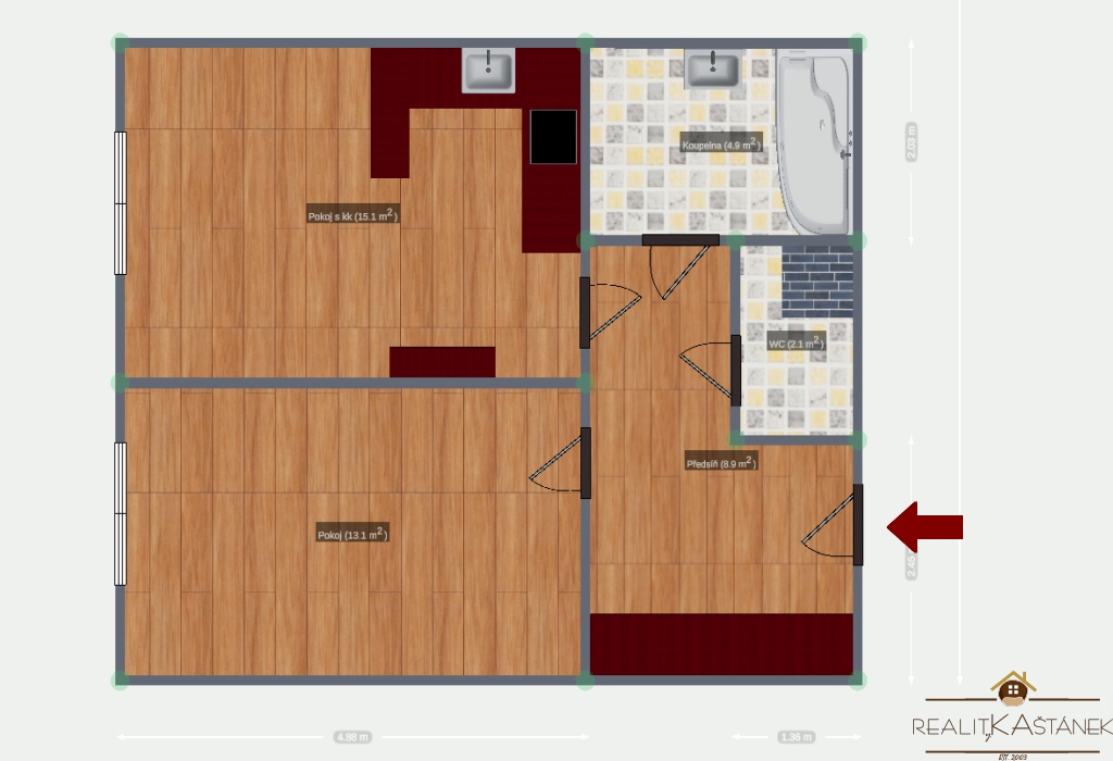 49 m2 | 2 pokoje s kuchyní | 1. NP |