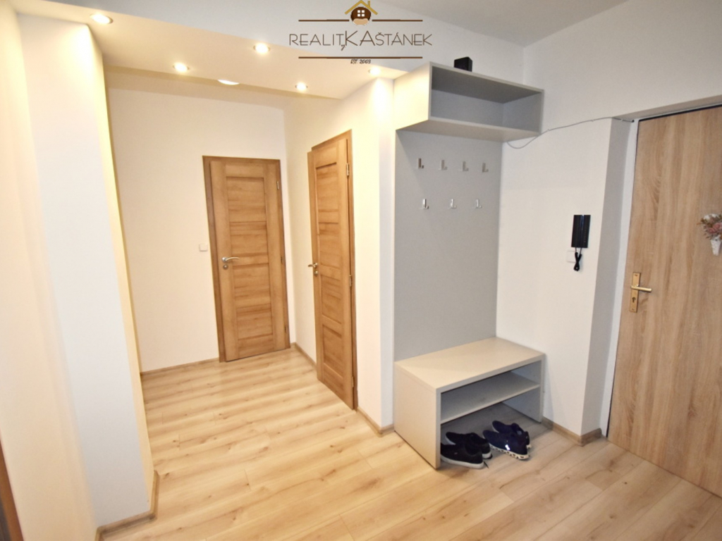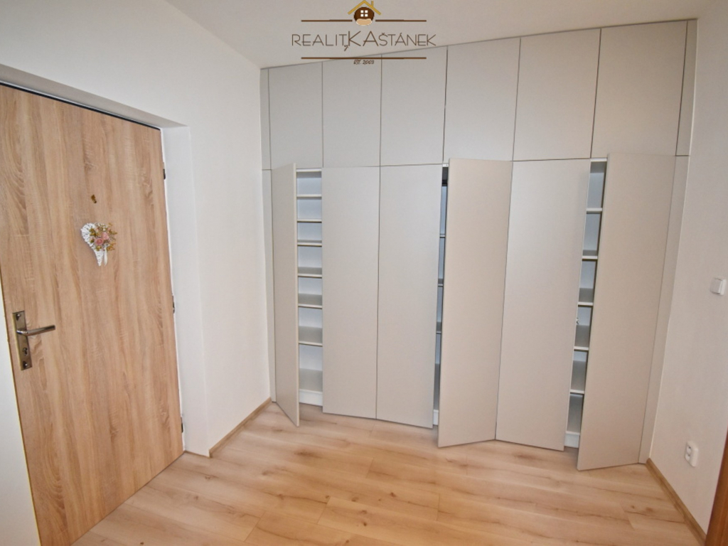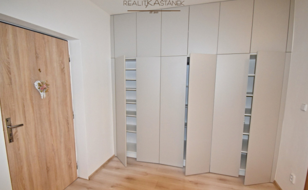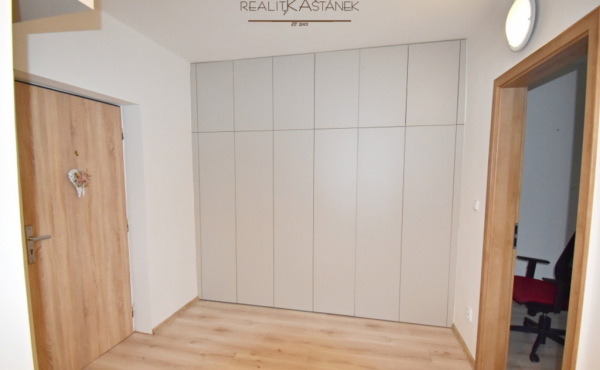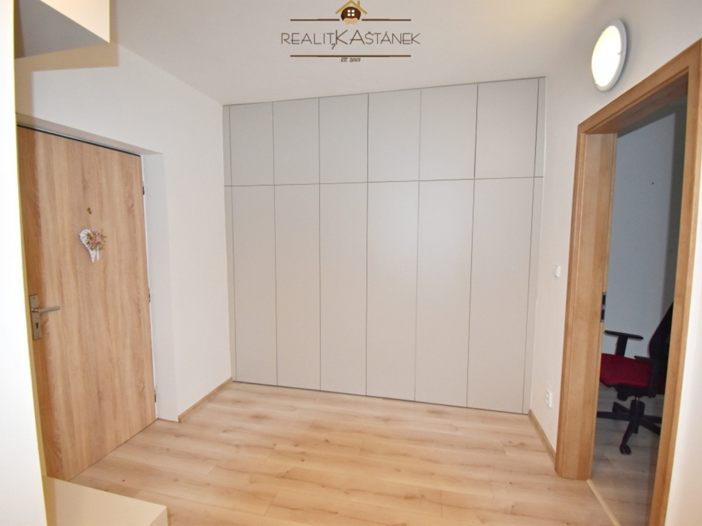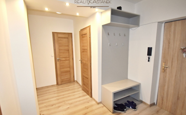 plastová okna, žaluzie, garnýže, plovoucí podlahy, nové dveře včetně zárubní, kompletní osvětlení (podhledové + světelné lišty). Kuchyň: nová kuchyňská linka na míru, praktický pult, úložná nika, sklokeramická deska + horkovzdušná trouba + menší myčka, digestoř. Zrekonstruovaná koupelna, prostorný sprchový kout, umyvadlo + umyvadlová skříňka, zrcadlo, přípojka na pračku, samostatné wc. Prostorná předsíň a šatní vestavba s množstvím úložných prostor.
