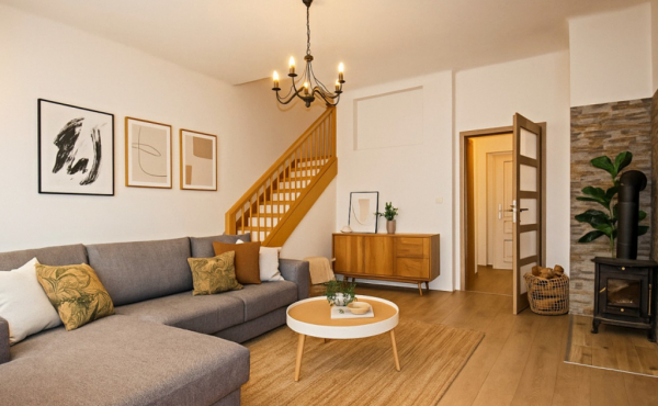 Dvoupodlažní rodinný dům po částečné vnitřní rekonstrukci, nezateplený. Součástí nemovitosti je oplocená slunná zahrada s jižní orientací ve vnitrobloku o velikosti 116 m2 a samostatná zkolaudovaná zděná garáž s dvoukřídlými vraty v zadní části parcely. Objekt vytápěn plynovým kotlem a krbovými kamny, je napojen na centrální kanalizaci, má kompletně novou elektroinstalace v mědi, rozvody plynu, kanalizace a vodoinstalace. Dostatečné množství nových plastových oken pro přirozené denní světlo, bezpečnostní vchodové dveře. Dům je zabezpečen alarmem a má novou přípojku plynu, elektřiny a internetu. Domek má zkolaudovanou venkovní přístavbu s možností rozšíření obytného prostoru.