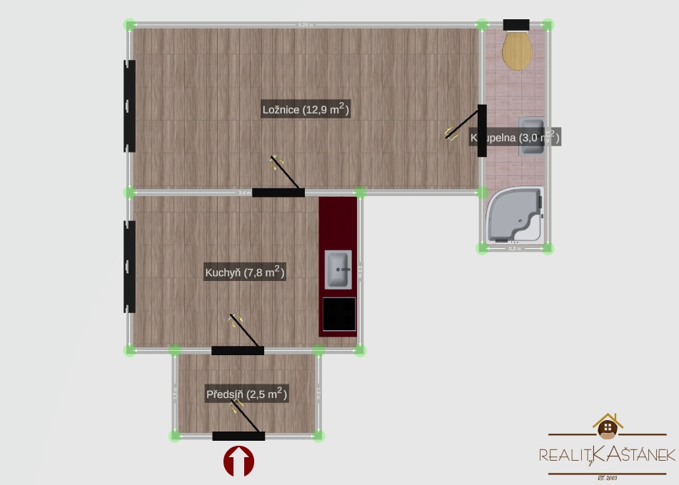 29 m2 | 1 pokoj + kuchyň | 1. NP | sklep | půda