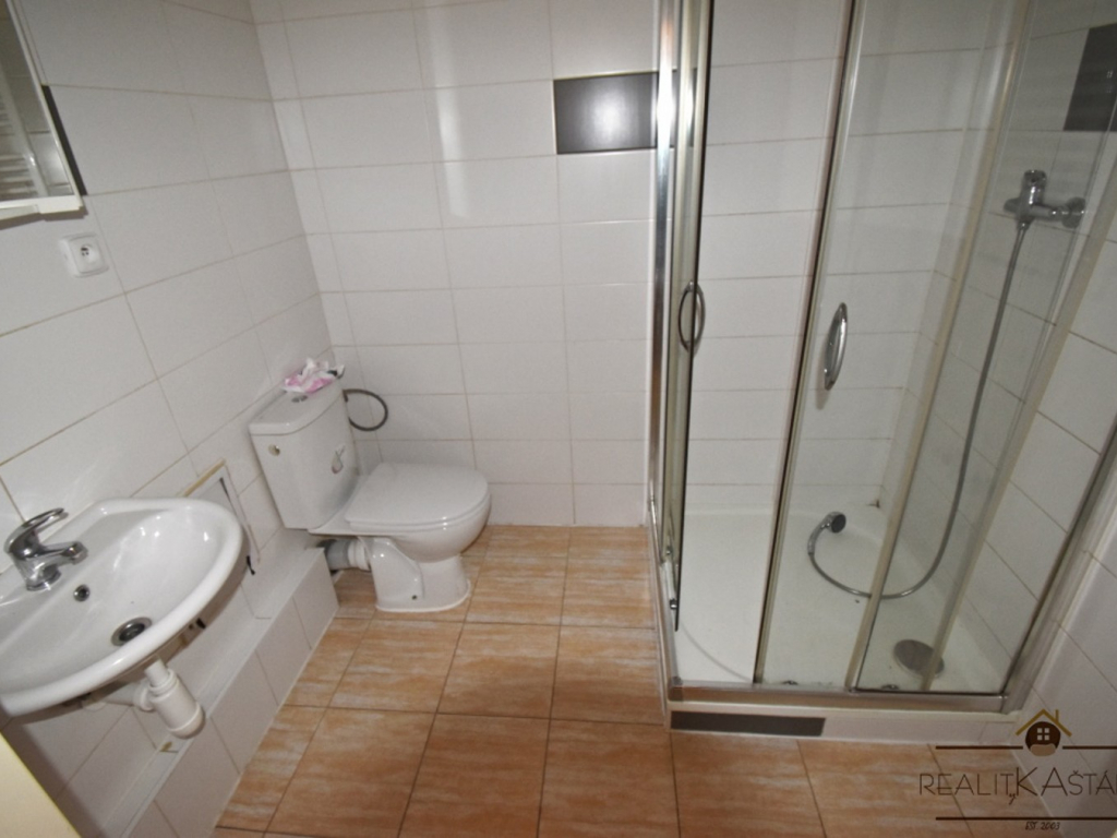 dřevěná, špaletová okna, pvc podlahy, dlažba v koupelně, sprchový kout, kuchyňská linka, el. sporák s troubou, podlahové vytápění v celém prostoru bytu, praktické vstupní zádveří. Bezbariérový přístup do bytu.
