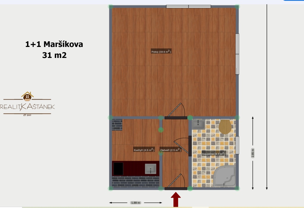 31 m2 | 1 pokoj + kuchyň | 2. NP | společná zahrada | půdní kóje