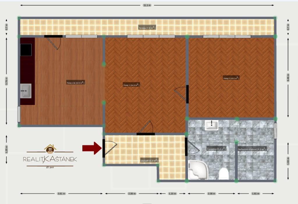 56 m2| 2 pokoje + kuchyň | 6. NP | terasa