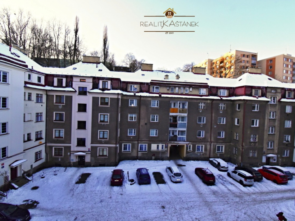 Cihlový dům bez výtahu, byt s výhledem do klidného vnitrobloku.