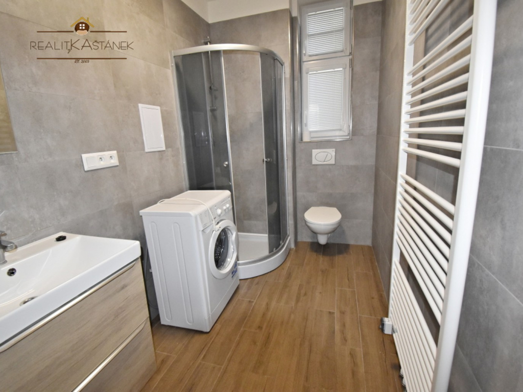 Kuchyň: nová kuch. linka včetně horkovzdušné trouby, sklokeramické varné desky, myčky a odsavače par. Koupelna s oknem: nová sanita, dlažby, sprchový kout, topný žebříček, umyvadlová skřínka, zánovní pračka, závěsné wc. Nové elektrorozvody. K bytu náleží praktické vstupní zádveří a samostatná sklepní kóje.