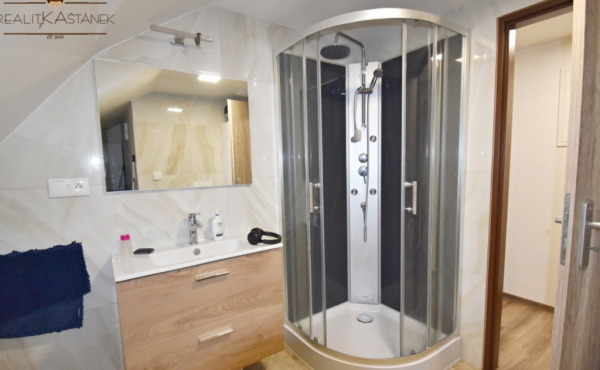 Plastová okna, žaluzie, plovoucí podlahy. Kuchyňská linka – elektrická trouba, sklokeramická varná deska, lednice. Koupelna se sprchovým koutem, závěsné wc, umyvadlová skříň, příprava na pračku. Vytápění vlastním elektrokotlem na bytovou jednotku. Bojler na ohřev vody.