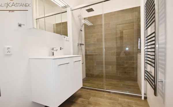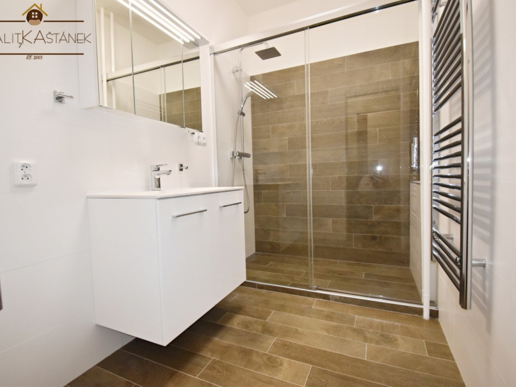 Plastová okna, žaluzie, nové interiérové dveře a obložky, podlahové krytiny – zrenovované dřevěné parkety, nový vinyl a dlažba. Nové elektrorozvody, nové LED osvětlení. Kuchyň: nadstandardní kuchyňská linka na míru, vest. spotřebiče zn. Whirpool - kombinovaný sporák (plyn) a el. horkovzdušná trouba, vestavěný špajz. Koupelna po kompletní rekonstrukci - nová, dlažba, sanita, sprchový kout, koupelnový set, přípojka na pračku. WC oddělené. Prostorná centrální hala s využitím na jídelní část. Součástí bytu je také zasklená zimní zahrada a lodžie. K dispozici sklepní kóje a další zděná sklepní místnost.