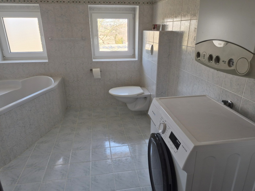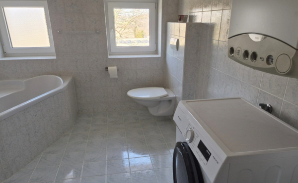 Nová plastová okna, podlahy: koberce, dlažba. Kompletně vybavená kuchyňská linka, digestoř a myčka nádobí, lednice, elektrická trouba, čtyřplotýnkový sporák, součástí kuchyně jídelní kout a potravinová komora. Prostorná koupelna s rohovou vanou, závěsné wc.